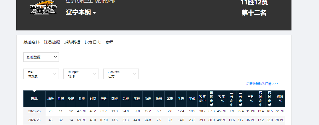 新疆男篮第一阶段令人失望的原因,整体上看与辽篮有相似之处。首先是成绩,第一阶段过后,新疆男篮以39.1%的胜率,排在积分榜第15位。